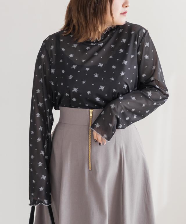 大きいサイズ/レディース/3L/4L/花柄シアーメロートップス