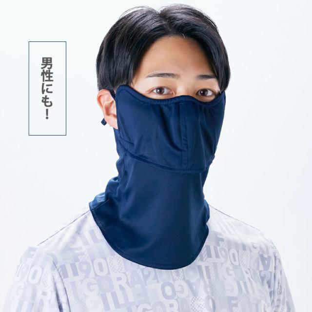 UVカット率98?99%・UPF50+の最高レベル素材で、顔・首まわりはもちろん目尻までしっかりガード。