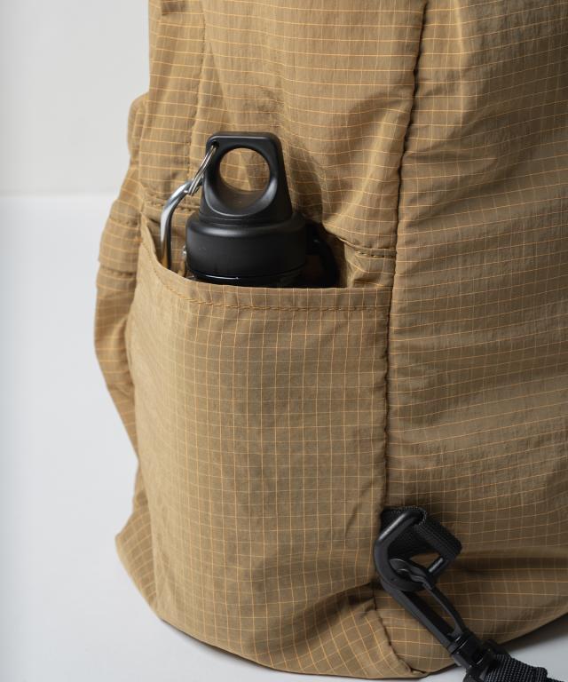 サイドポケットは500mlのペットボトルがちょうど収まるサイズ。
