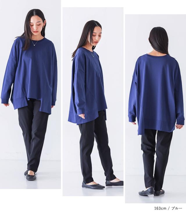 カットソー 長袖 レディース トップス ロンT 綿100% クルーネック アシンメトリー アシメ ランダムヘム お尻が隠れる 春 秋 【TP】 Tシャツ プルオーバー n'OrLABEL ノアールレーベル 大人女子 大人可愛い お洒落可愛い 大人カジュアル ベーシック ラフ オフィスカジュアル 上品 きれいめ ナチュラル ホワイト 白 オフホワイト ミディ丈 ミドル丈 チュニック丈 オーバーサイズ 切り替え リブ 無地 コットン100% レイヤード 重ね着 おうちで洗える 冬 ロングシーズン カジュアル シンプル モード マニッシュ キレカジ フェミニン ゆったり ゆる 楽ちん Sサイズ Mサイズ Lサイズ LLサイズ 3Lサイズ XLサイズ フリーサイズ ぽっちゃり 体型カバー 体形カバー 大きいサイズ プラスサイズ 10代 20代 30代 40代 50代 60代 低身長 高身長 女子会 オフィス 通勤 通学 お買い物 お出掛け 旅行 リゾート レジャー おしゃれ お洒落 トレンド 流行 osharewalker オシャレウォーカー おしゃれうぉーかー ブルー 青 ブラック 黒[ID]11tp04z[n'OrLABELアシメ切替ランダムヘムカットソー]