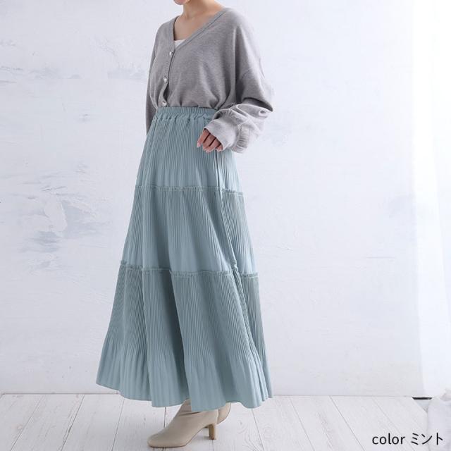 スカート好きさんにこそ着てほしい、プリーツティアードロングフレアスカート。