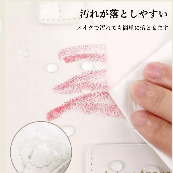 汚れに強い素材を使用し、撥水加工で水はねも安心。万が一汚れてもサッと拭き取るだけで清潔をキープできます。