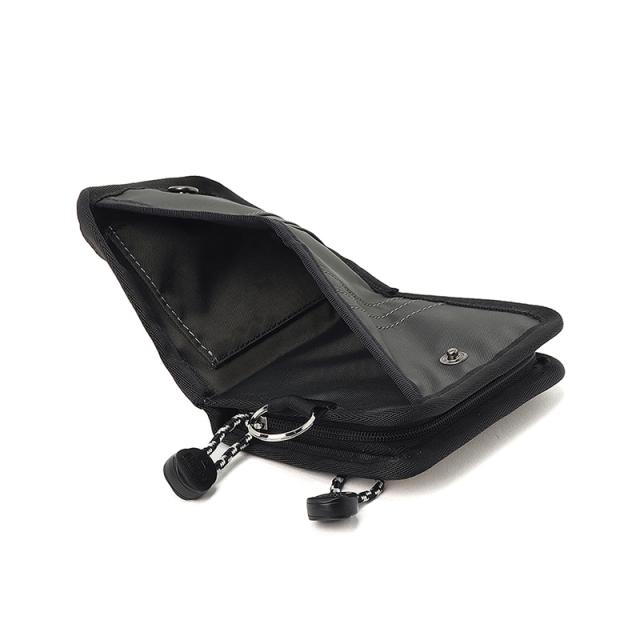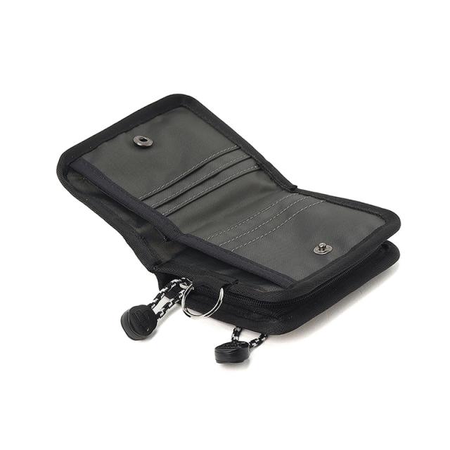 100%リサイクル素材「RENU」を使用し、タフさと軽さを両立。スナップ開閉で扱いやすく、豊富なポケット配置でカードや紙幣、小銭をすっきり整理可能。