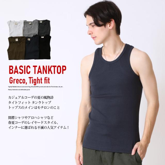 タンクトップ メンズ コットン フィット タンクトップ ノースリーブ タイトフィット インナー 無地 タンクトップ テレコリブ ベーシック