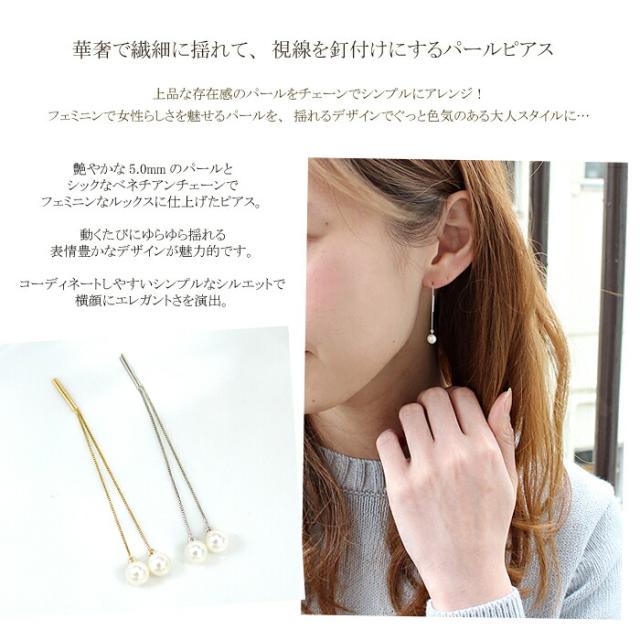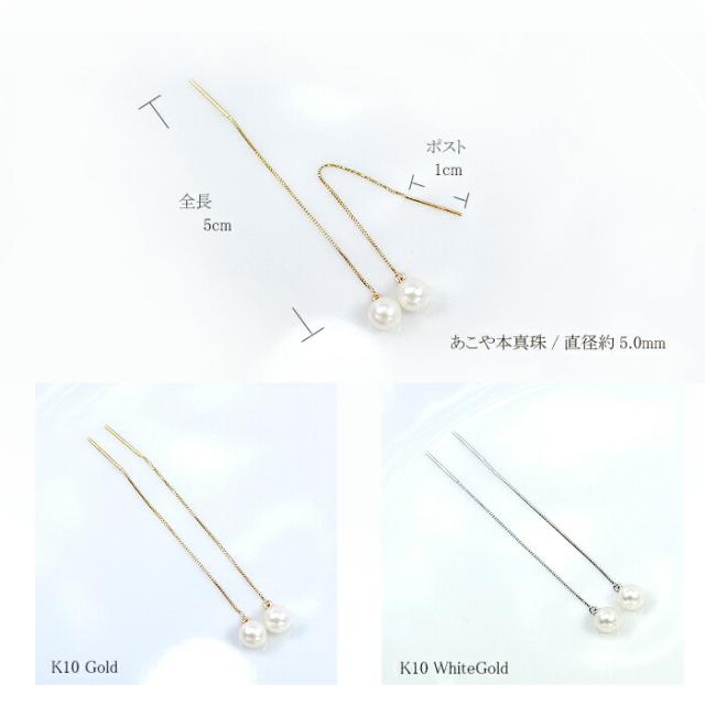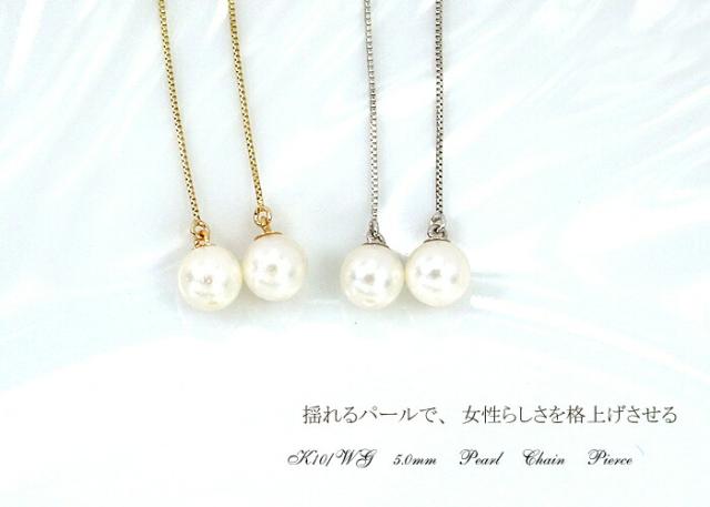 ピアス あこや 本真珠 パール 5mm 10金 ホワイトゴールド ピンクゴールド K10 WG PG チェーン レディース アクセサリー ジュエリー ギフト 339604