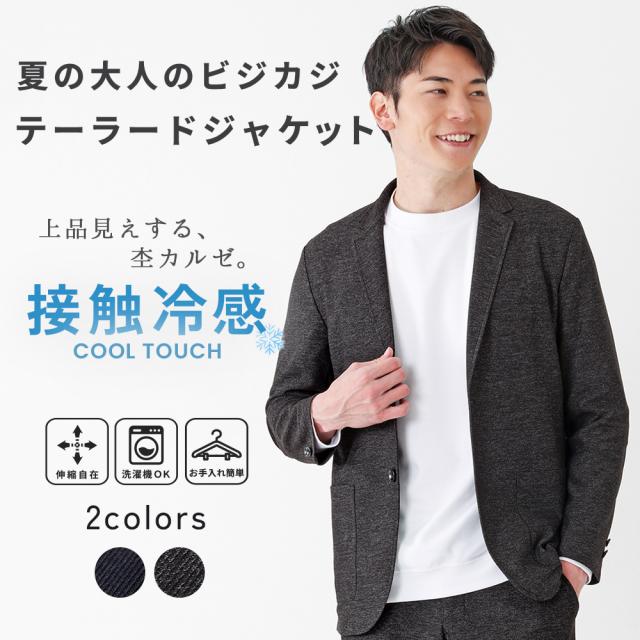 テーラードジャケット メンズ ストレッチ カジュアルジャケット 杢カルゼ 接触冷感 ひんやり 涼しい きれいめ ビジネス オフィス 春 夏 アーバンスクエア 36353