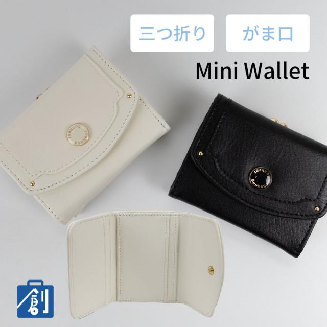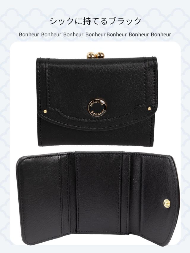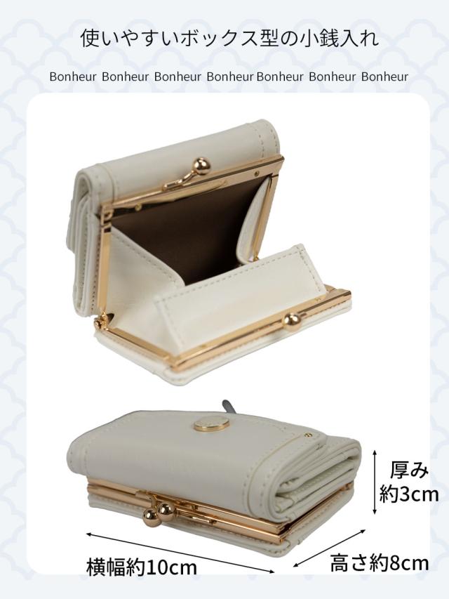 小銭入れはがま口開閉で中身を見渡せるボックス型になっています。バッグの収まりがいいコンパクトな三つ折り財布です。