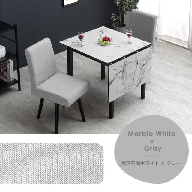 伸長式ダイニングテーブルセット 3点セット 回転チェア エクステンション 食卓テーブル 伸縮テーブル 伸縮式 テーブル 折りたたみ コンパクト 木製 大理石 おしゃれ 北欧 2人掛け 4人掛け