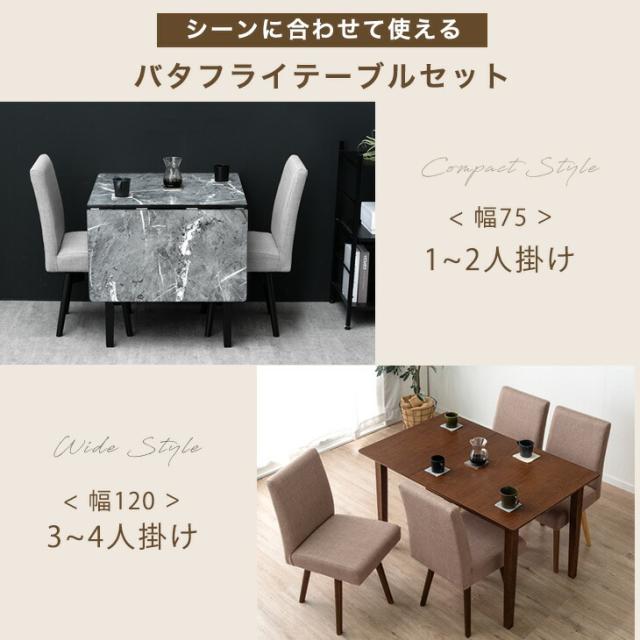 【正午〜P5%還元】 バタフライ ダイニングテーブルセット 回転椅子 2人用 3点 75 120 伸長式ダイニングテーブル 伸縮 伸長 ダイニングテーブル ダイニングセット ダイニング テーブル 回転 チェア セット 2人 4人 正方形 長方形【超大型】【後払/時間指定NG】