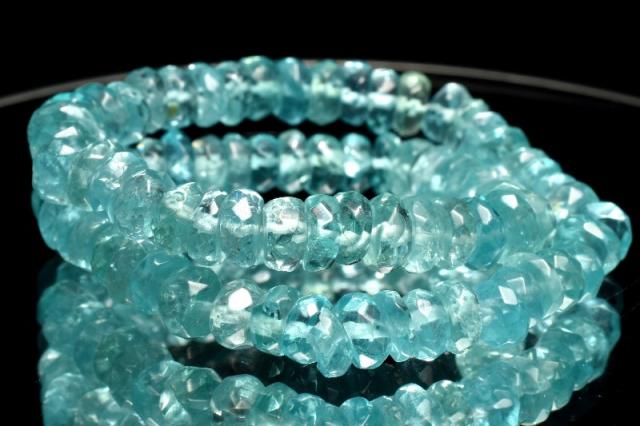 【1点物】高品質◇透明感 アパタイト 2-3x4.5mm ボタンカット ブレスレット 恋愛運_MC6226