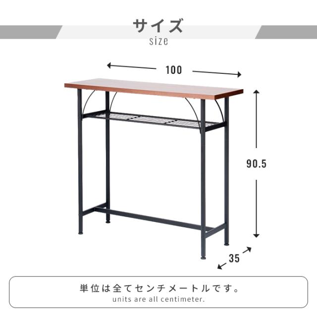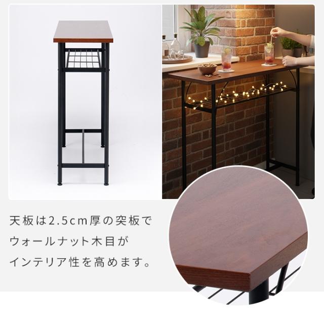 カウンターテーブル 幅100 奥行35 高さ90 棚付き バーテーブル ハイテーブル スリム コンパクト ウォールナット 木目 鉄脚 足置き付き カフェ風 対面キッチン 作業台 パソコンデスク おしゃれ 木目 ウォールナット 新生活