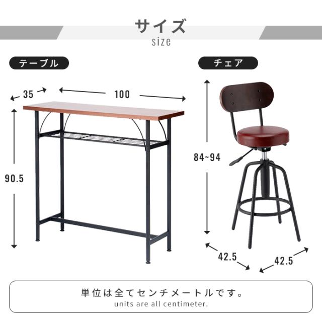 | [テーブル]幅100×奥行35×高さ90.5cm [チェア]幅42.5×奥行42.5×高さ84〜94cm/1脚 |