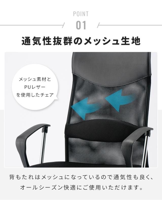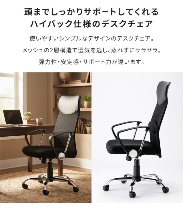 頭までしっかりサポートしてくれるハイバック仕様のデスクチェア。