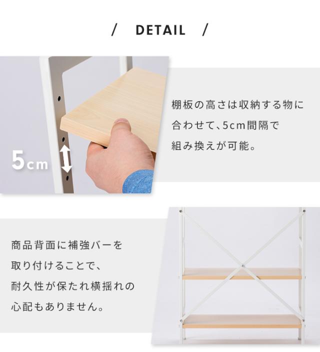 | キッチンやサニタリーなど様々なシーンで活躍するオープンラック。 木目調の天板とスチールフレームの組み合わせが落ち着いた雰囲気を演出。 すっきりと飽きのこないフレームデザインで、狭い空間でも圧迫感なく設置でき、商品背面に補強バーを取り付けることで、耐久性が保たれ、横揺れの心配もありません。 棚板の高さは収納するモノに合わせて、5cm間隔で組み換えが可能。 商品背面に補強バーを取り付けることで、耐久性が保たれ横揺れの心配もありません。 棚板はキズや熱、水分に強いメラミンシートを採用しています。 脚下にはガタツキを防ぐアジャスター付き。 |