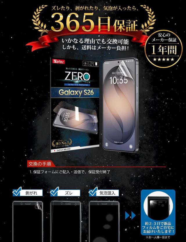 【365日完全保証】 Galaxy S26 SC-51G フィルム 湾曲まで覆える 4D 保護フィルム フィルム 貼ったら消える魔法のフィルム 気泡ゼロ 2枚セット 極薄0.08mm 究極のさらさら感 衝撃吸収 OVER`s オーバーズ TP01