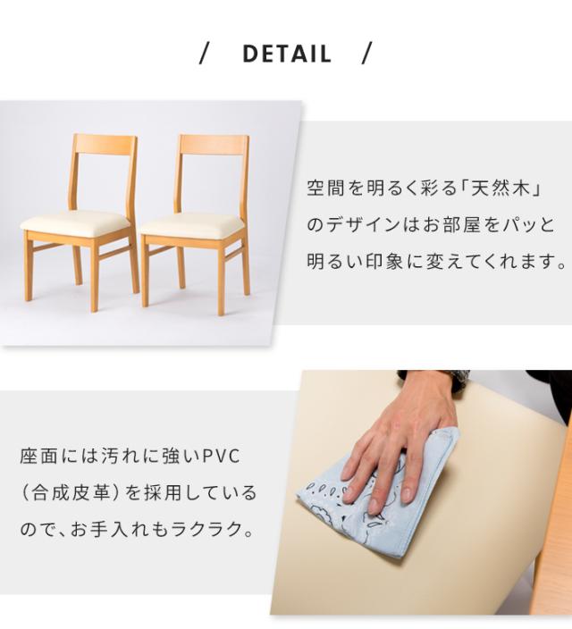 ダイニングチェア 2脚セット 天然木 完成品 ナチュラル 木製チェア 木目 椅子 イス チェア シンプル 北欧 おしゃれ ダイニング 椅子セット PVC お手入れ簡単 軽量 食卓チェア リビングチェア 北欧風 買い足し 買い替え 新生