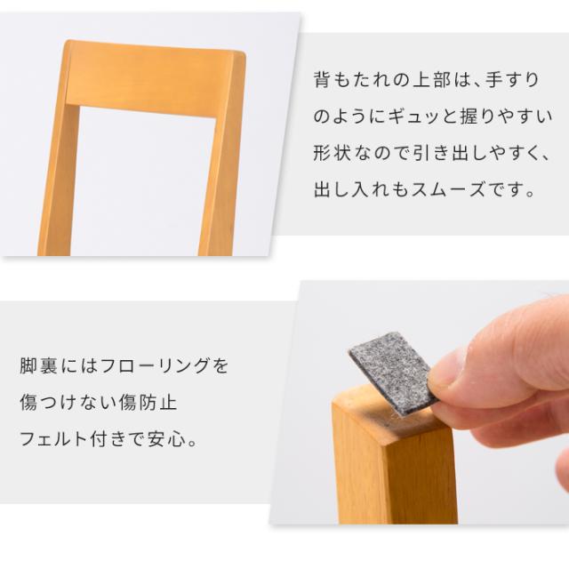 背もたれは手すりのように握りやすい形状で、椅子の出し入れもスムーズ。