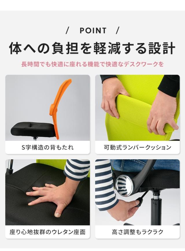 キーワード: デスクチェア 椅子 チェア パソコンチェア オフィスチェア キッズチェア メッシュチェア コンパクト 高さ調節 カラフル 塾 受付 疲れにくい 通気性 ランバーサポート 書斎 オフィス 肘取外し可能 女性 カラフル 移動 コストパフォーマンス お手軽 ガス圧 見た目 可愛い 腰痛 腰がラク お買い得 SOHO OL 学校 施設 来客