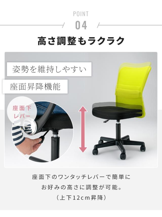 デスクチェア オフィスチェア 肘なし パソコンチェア 学習椅子 コンパクト チェア 椅子 高さ調節 昇降式 ガス圧 ランバーサポート 腰当て 腰痛対策 疲れにくい キッズ 学童 塾 学校 施設 受付 事務所 カラフル コスパ お手軽