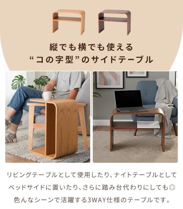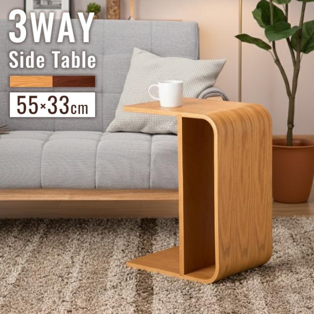 サイドテーブル 木製 曲げ木 縦横2WAY 幅55cm ソファテーブル ナイトテーブル ローテーブル 棚付きミニテーブル ナチュラル/ブラウン 完成品 おしゃれ 北欧風 オーク突板 組立不要 かわいい 北欧風 新生活 一人暮らし