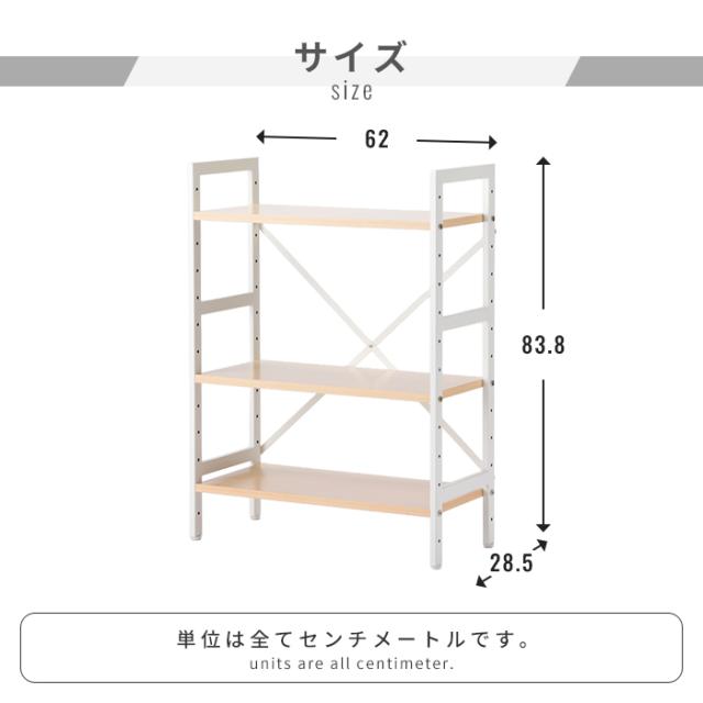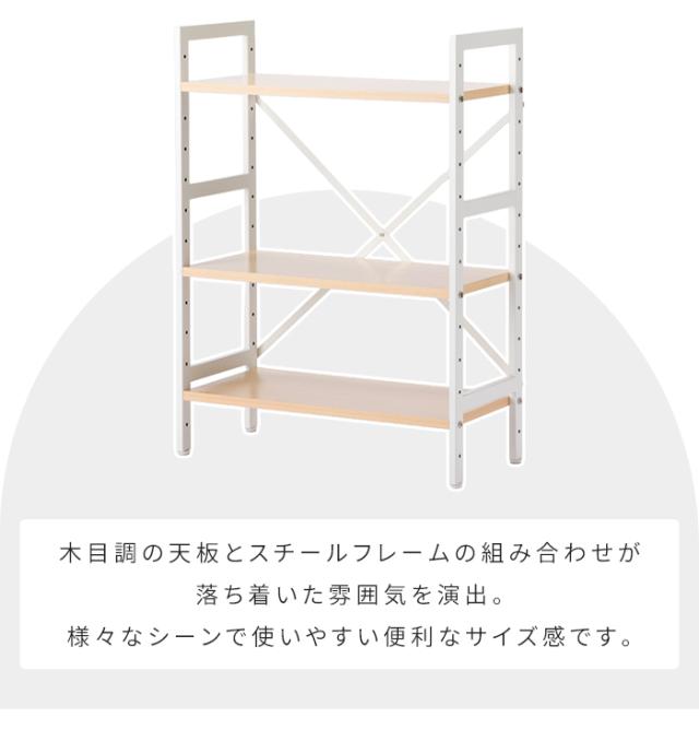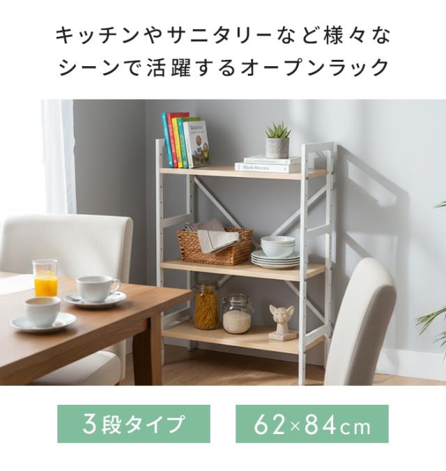 オープンラック 3段 幅62 奥行28.5 高さ83.8 木目調 スチールラック 棚 高さ調節可 収納棚 可動棚 メラミン棚板 キッチン 洗面所 ランドリー サニタリー フリーラック キッチンラック ランドリーラック 収納ラック ナチ
