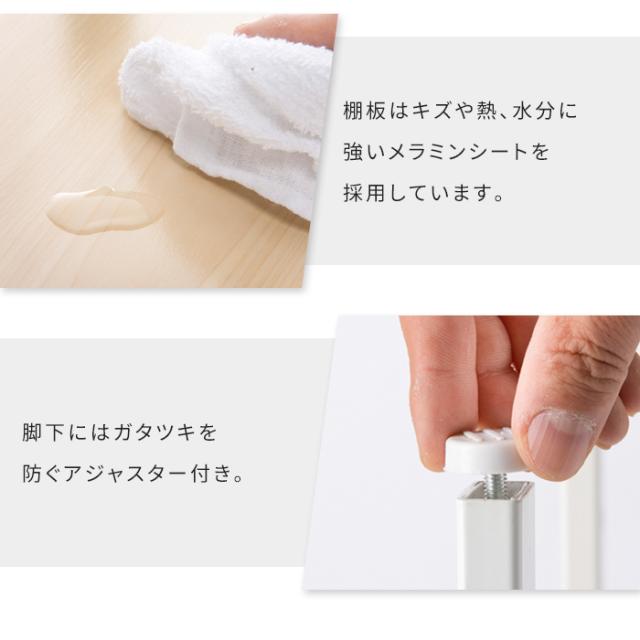 棚板はキズや熱、水分に強いメラミンシートを採用しています。