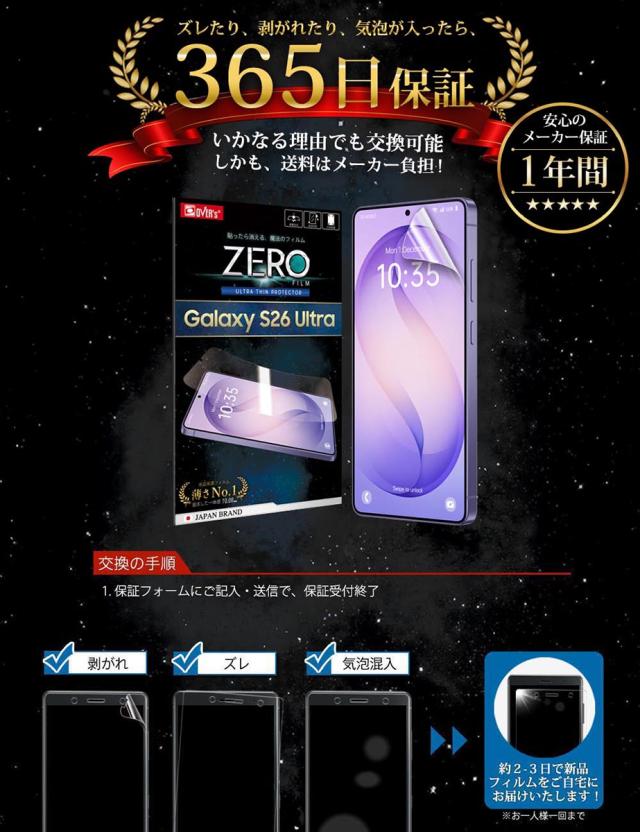 【365日完全保証】 Galaxy S26 Ultra SC-53G フィルム 湾曲まで覆える 4D 保護フィルム フィルム 貼ったら消える魔法のフィルム 気泡ゼロ 2枚セット 極薄0.08mm 究極のさらさら感 衝撃吸収 OVER`s オーバーズ TP01