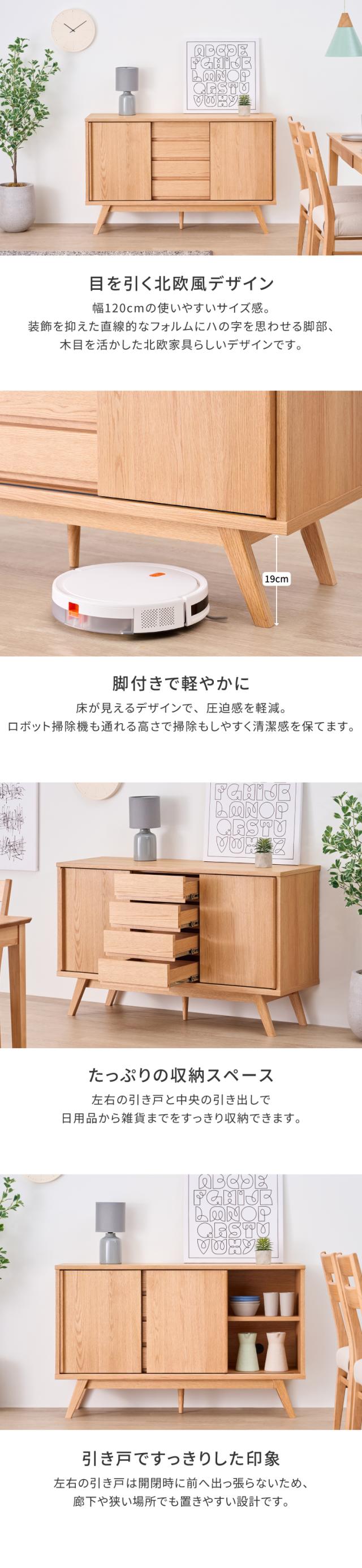 キャビネット 120cm 北欧インテリア サイドボード リビング収納 ナチュラル家具 家族向け収納 ライトブラウン家具 おしゃれ収納家具 リビングボードおすすめ ISSEIKI ARTE