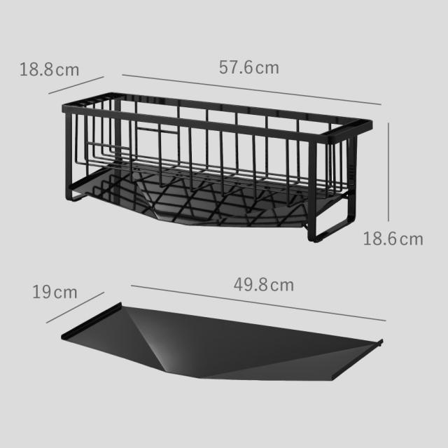 ■サイズ:ワイヤーバスケット/幅57.6×奥行18.8×高さ18.6cm、水切りトレー/幅49.8×奥行19cm