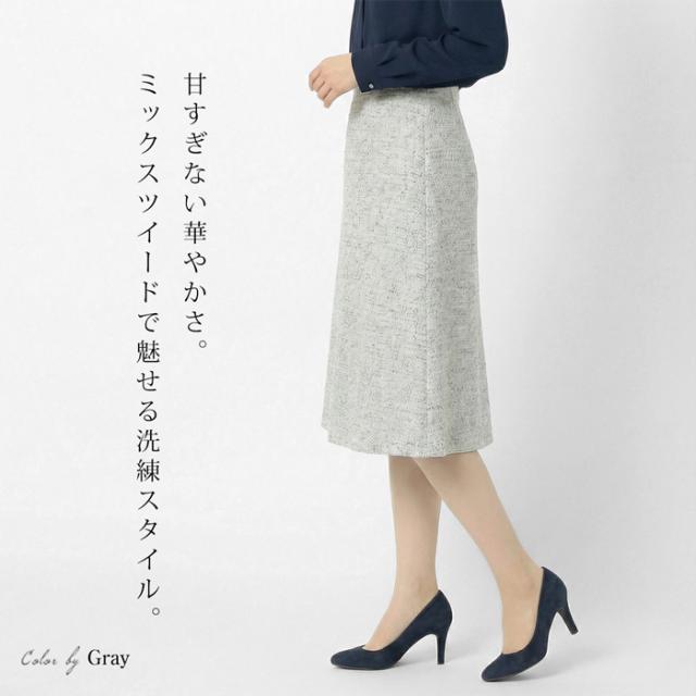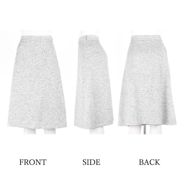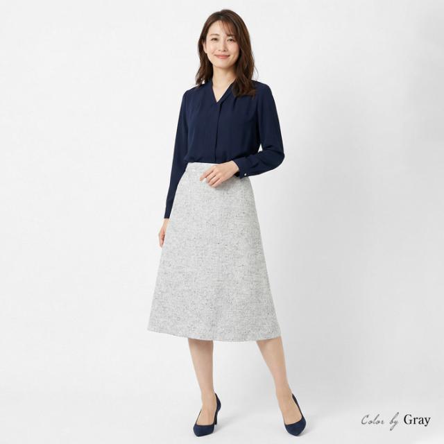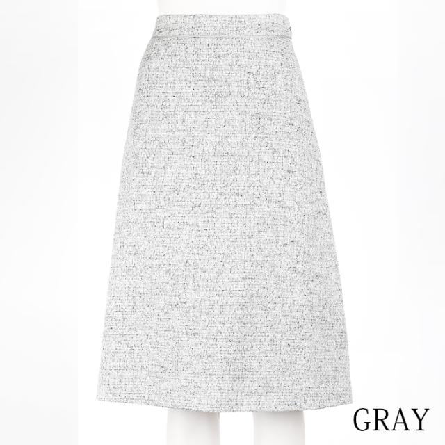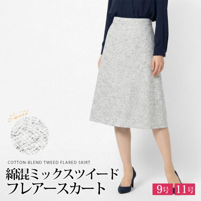 送料無料 フレアースカート レディース ボトムス 綿混 ミックスツイード 膝下丈 ミディ丈 Aライン 無地 グレー[57275]