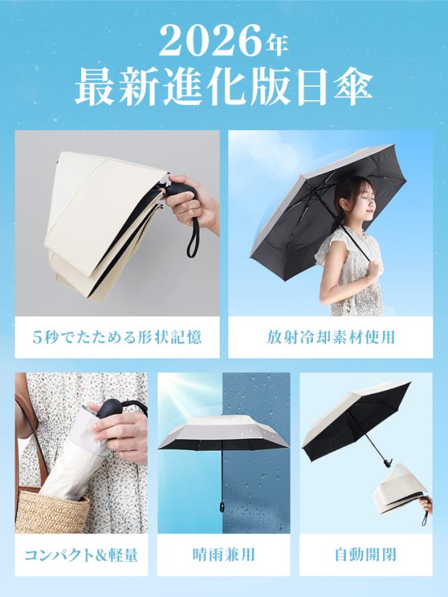 【2026進化版!クーポンで半額⇒2,990円】 日傘 折りたたみ 自動開閉 形状記憶 冷却素材 完全遮光 晴雨兼用 上位モデル 5層構造 傘 軽量 コンパクト 放射冷却 UVカット 撥水 雨傘 レディース メンズ 通勤 通学 暑さ 紫外線対策 熱中症対策 送料無料
