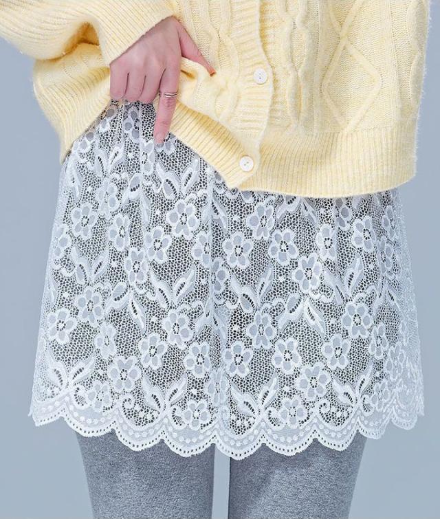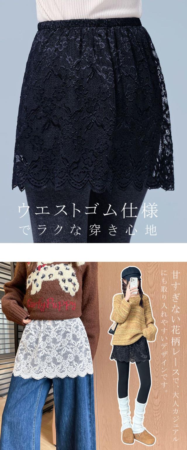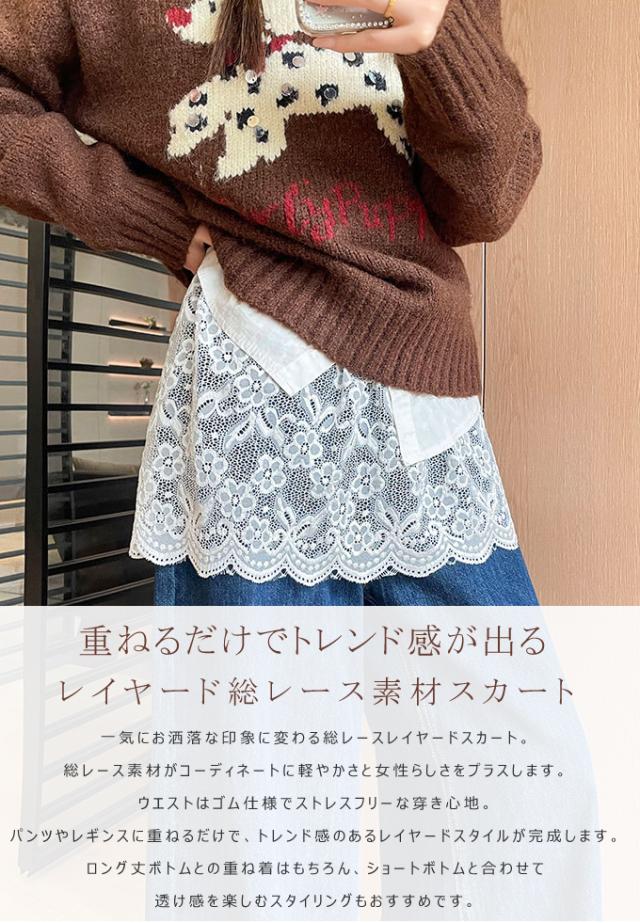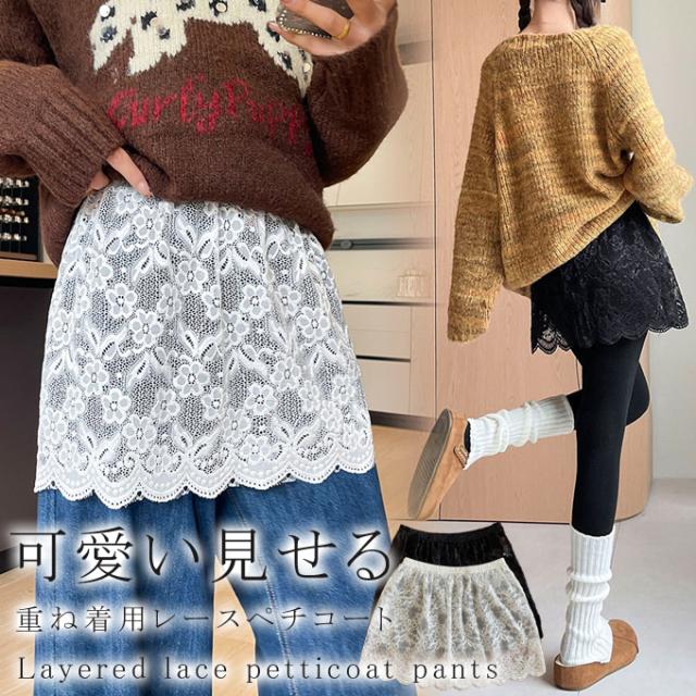 可愛い見せる ペチコート スカート レイヤードスカート レディース 総レーススカート ウエストゴム 透け感 重ね着スカート レースボトム 春 夏 秋 韓国ファッション