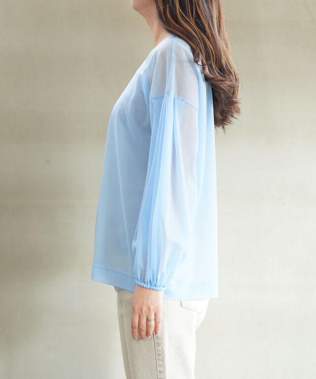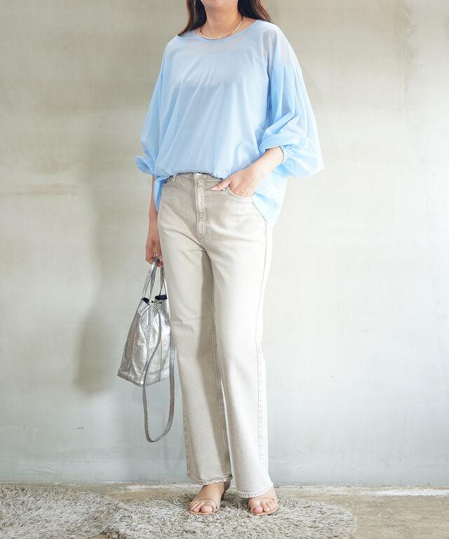春のキレイめスタイルにピッタリなボリュームスリーブシアートップス。