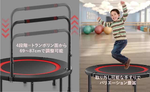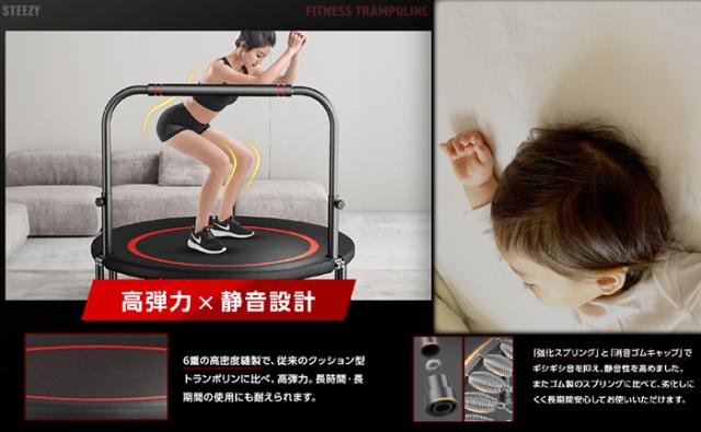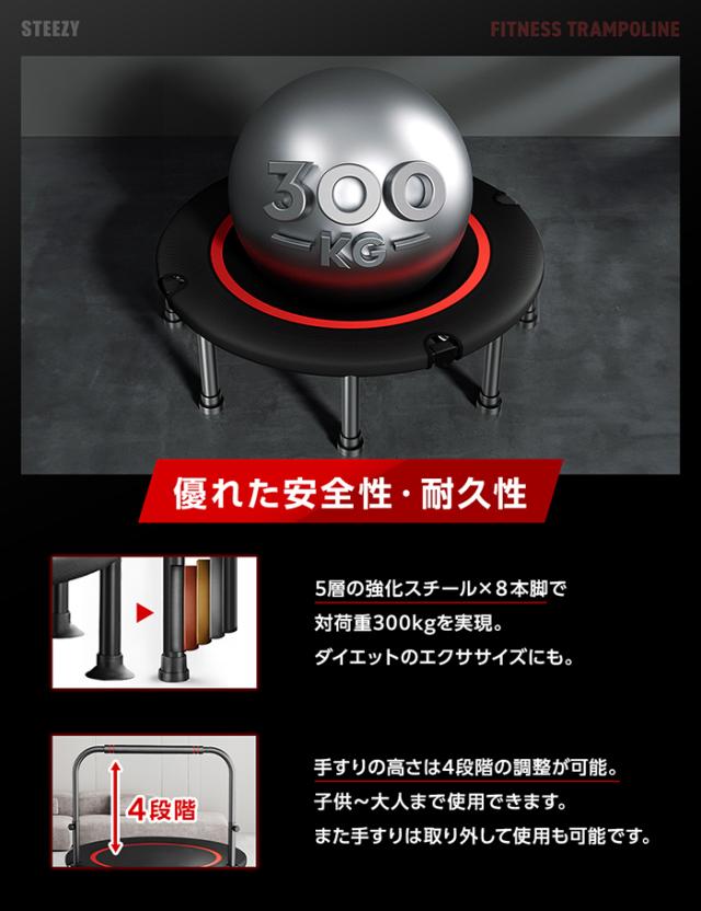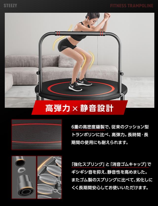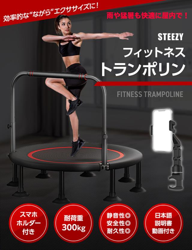【ながらエクササイズ】トランポリン 室内 スマホホルダー付 国内企画 静音 8本脚 耐荷重300kg 手すり 取り外し 有酸素 フィットネス エクササイズ 102cm 40インチ