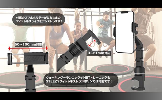 手すり部分に取り付け可能なスマホホルダーが付属!SNSや話題のレッスン動画を見ながらの💡『ながらエクササイズ』が楽しめます♪日本語の説明書と動画で簡単に組み立てが可能です!