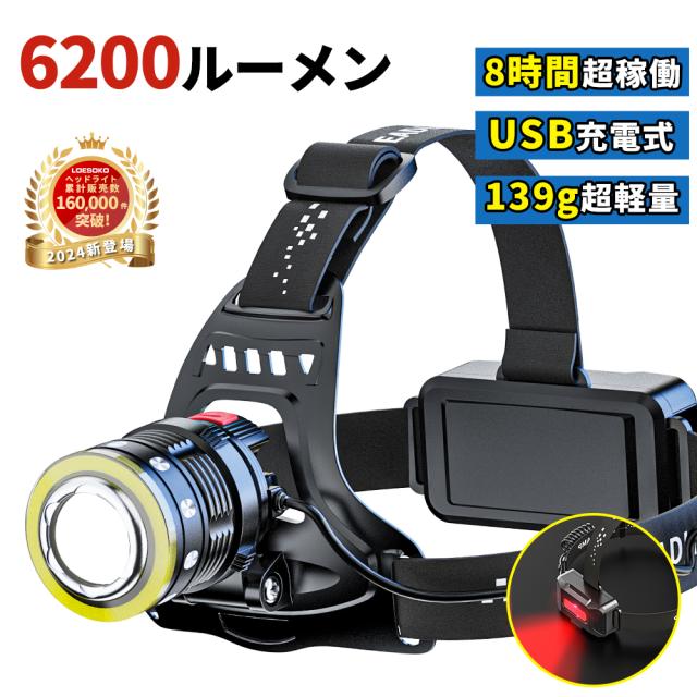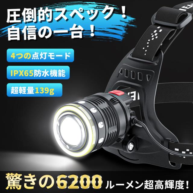【ポイント5倍】 ヘッドライト 6200ルーメン 最新型 高輝度 充電式 LED ヘッドランプ 軽量 防水 防塵 停電対策 登山 釣り キャンプ アウトドア用 ランニング 夜間 明るい コンパクト 長時間点灯 地震 地震対策 防災 災害対策 LEDヘッド