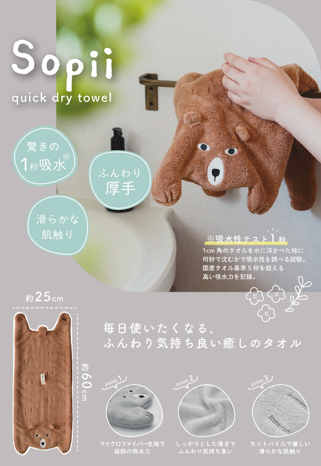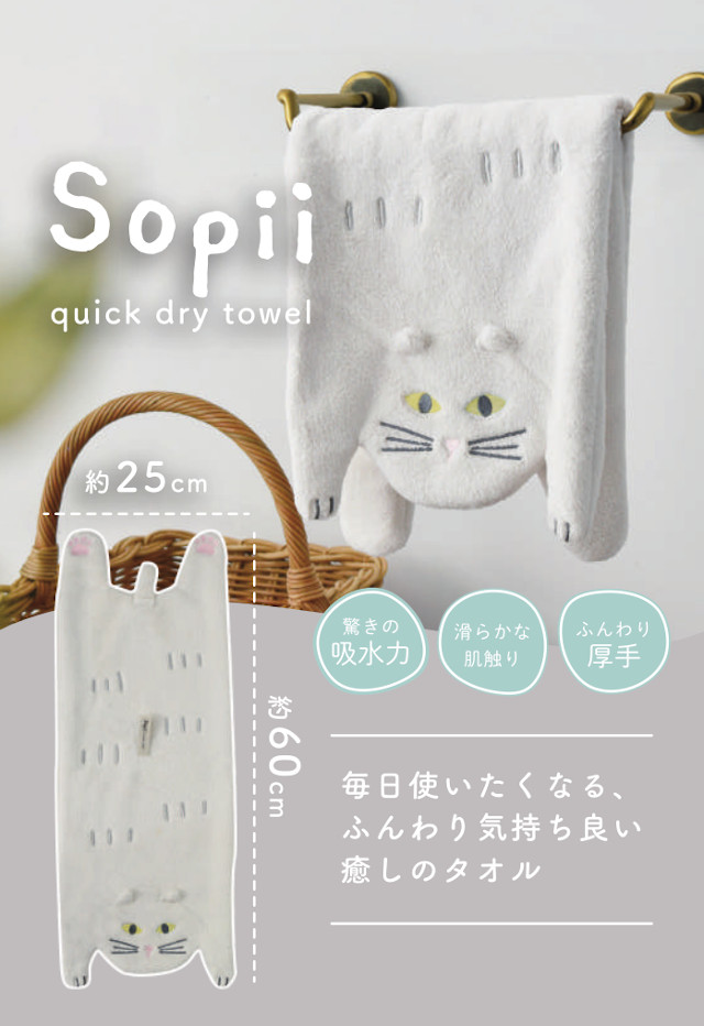 Sopii 可愛らしいクイックドライタオル A738 A770【現代百貨 クイックドライタオル フェイスタオル ハンドタオル 速乾タオル ヘアドライタオル 超吸水 吸水タオル キャット ベア 猫 熊 cat bear ねこ ネコ ホワイトデー 母の日 父の日 敬老の日 クリスマス xmas】