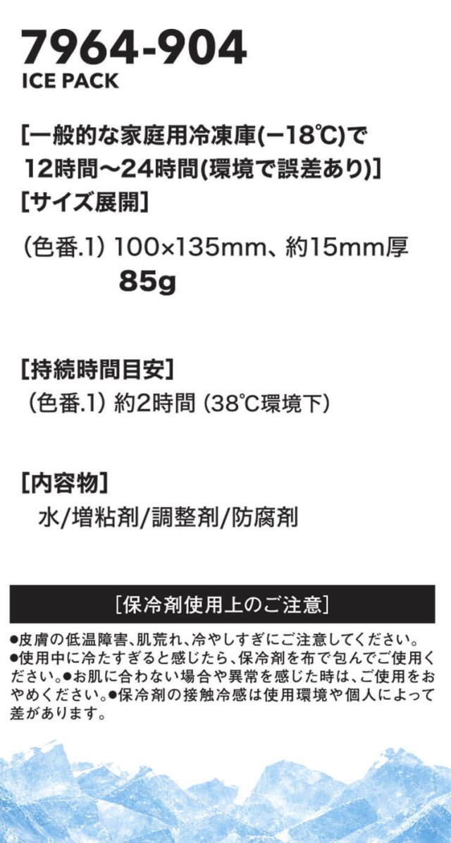 [4月中旬入荷先行予約] 熱中症対策 保冷剤 7964シリーズインナー対応 アイスパック 1番85g 7964-604 2026年春夏新作