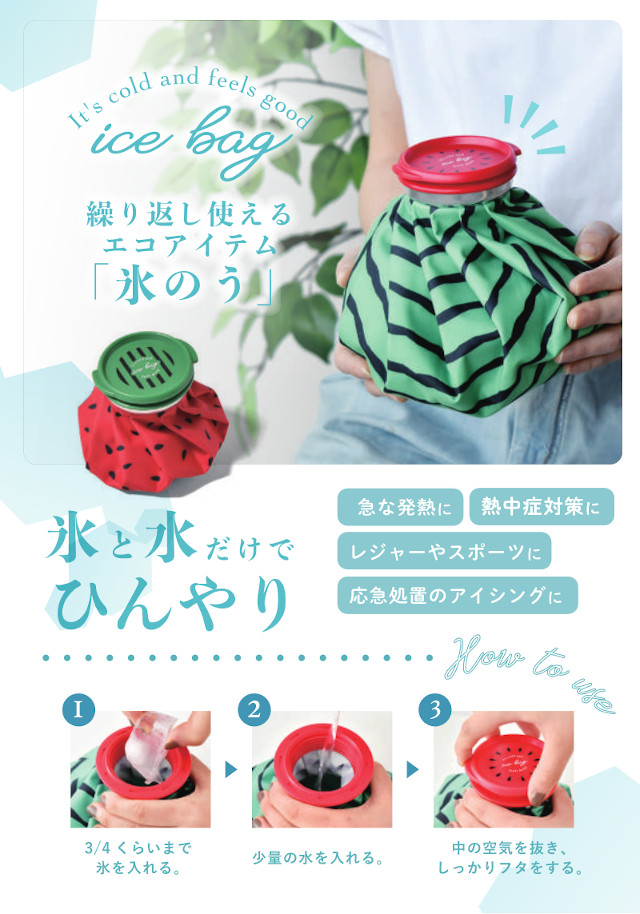 氷と水を入れればひんやりする、繰り返し使える熱中症対策グッズです。
