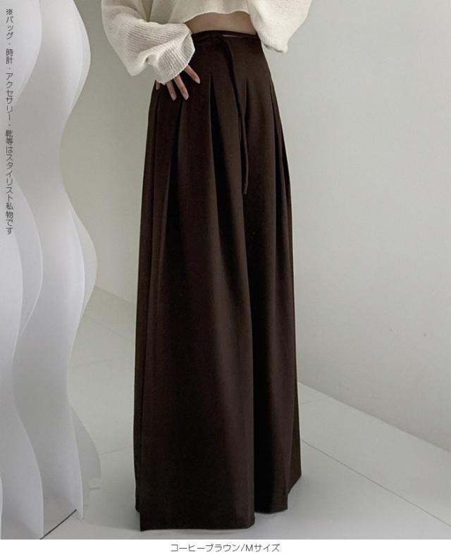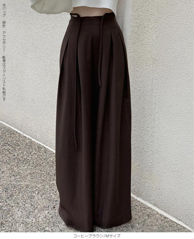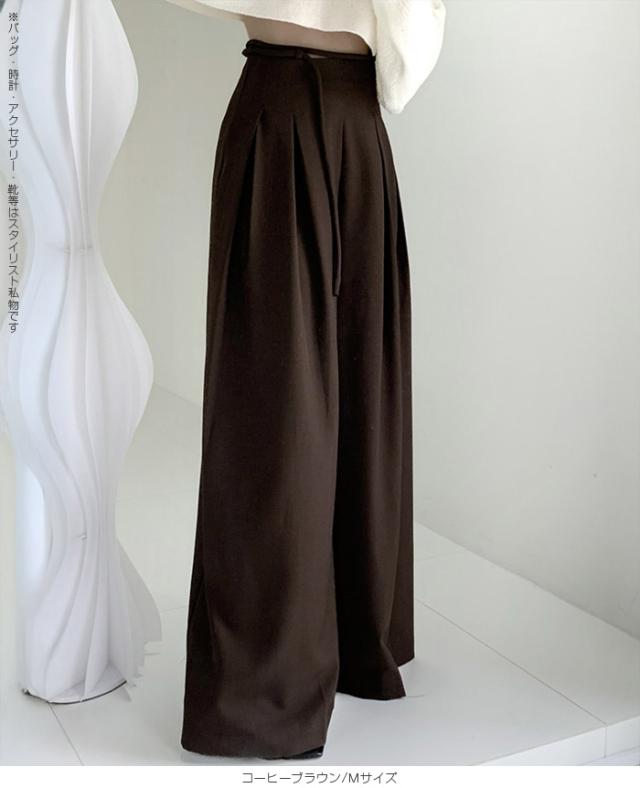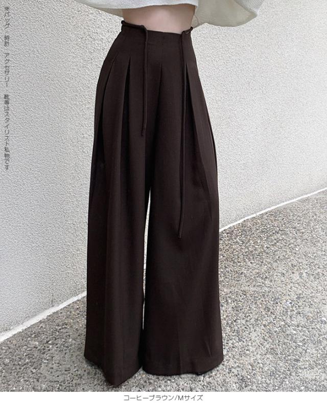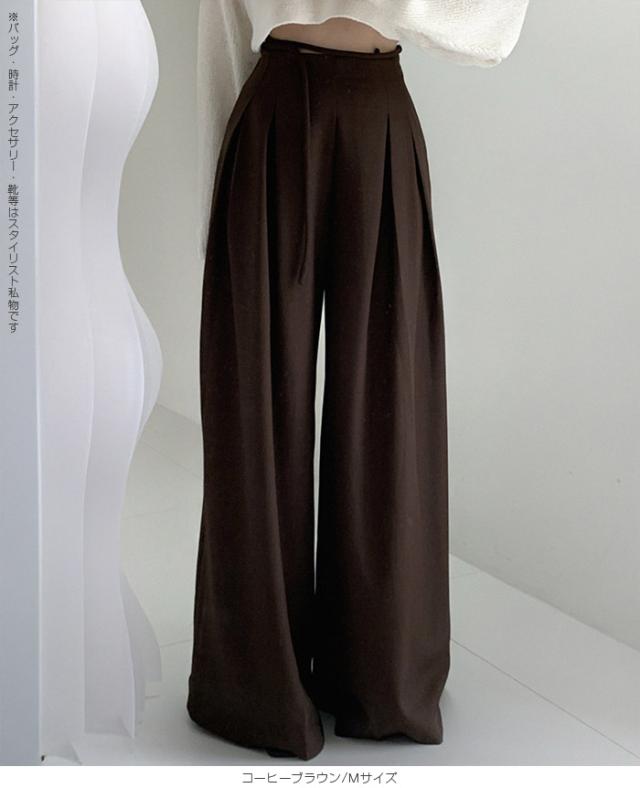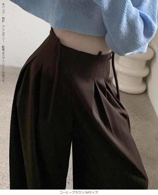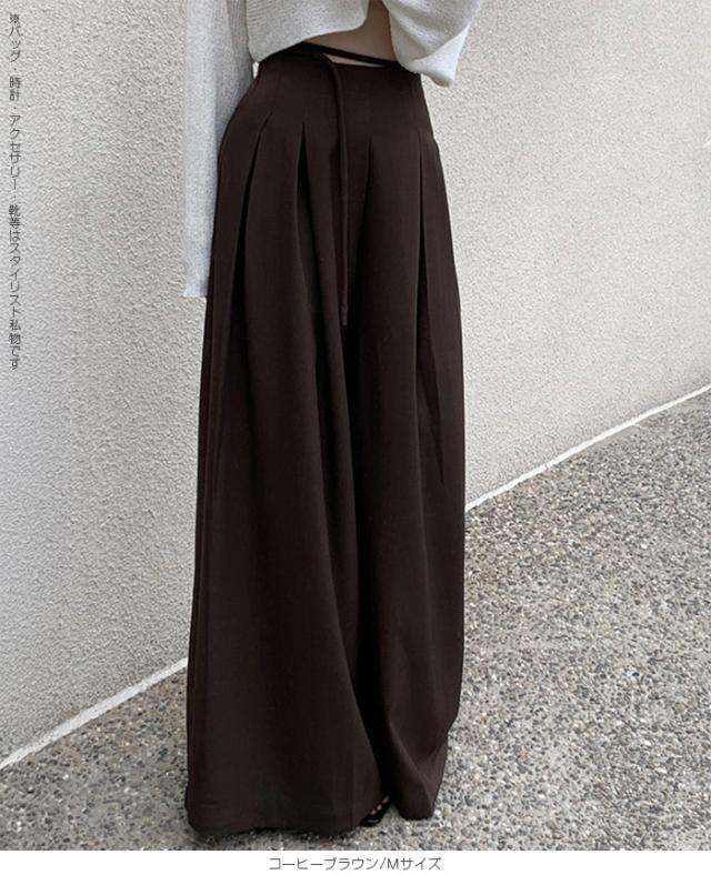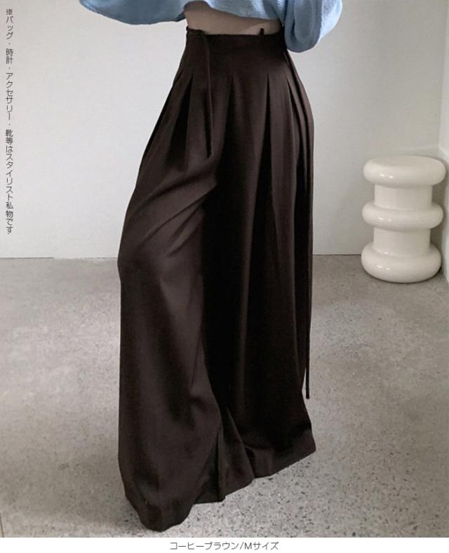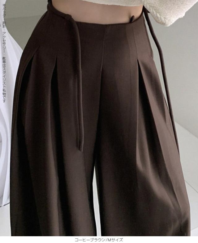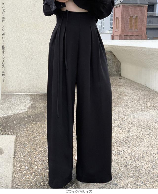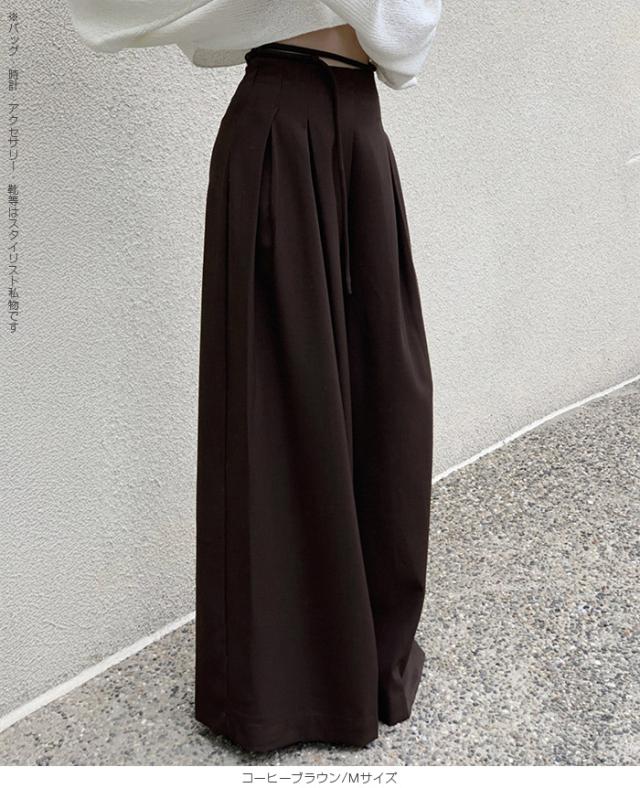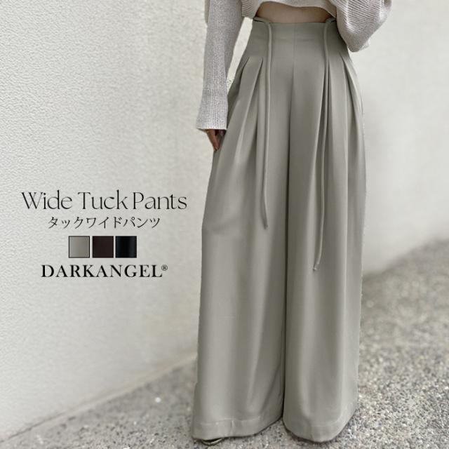 33%OFFクーポン!パンツ タックワイドパンツ レディース 春 秋 ハイウエスト ワイドパンツ ウエストリボン ロングパンツ きれいめ カジュアル ブラック ブラウン アイボリー 【ハイウエストタックワイドパンツ】 ダークエンジェル