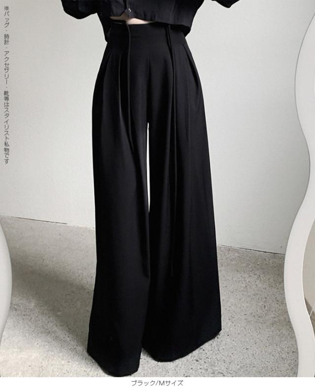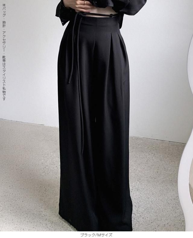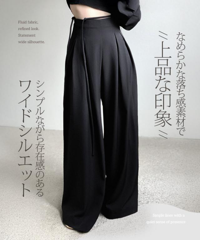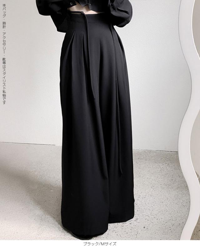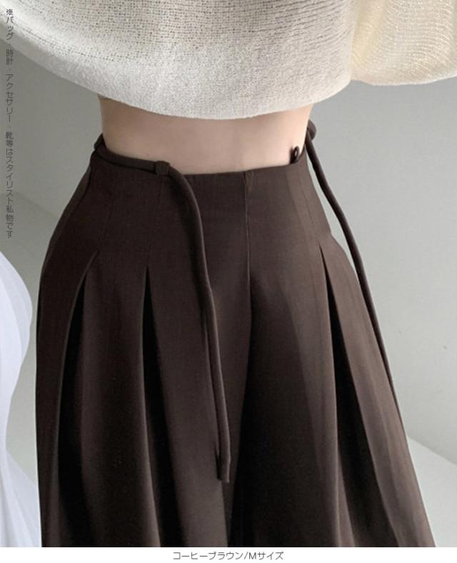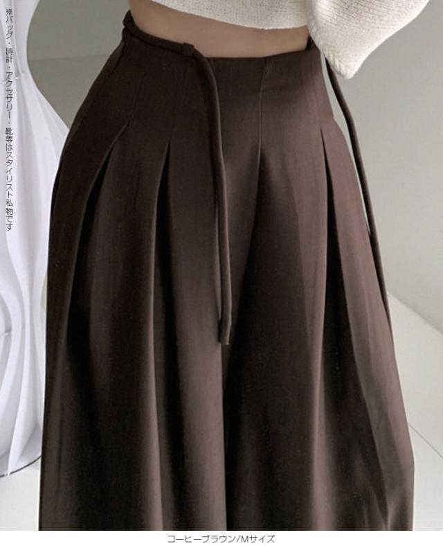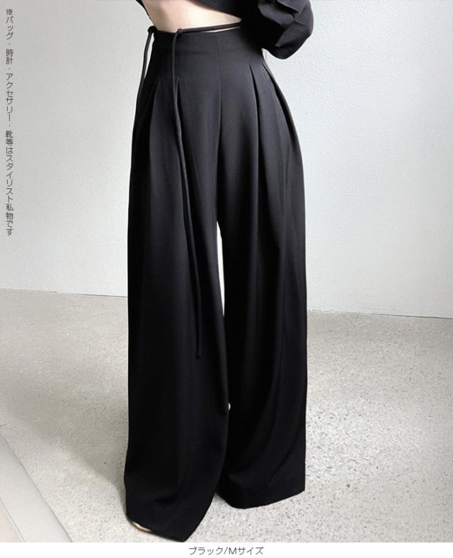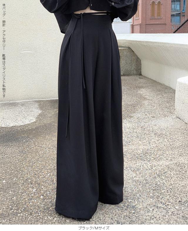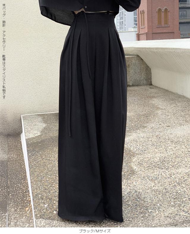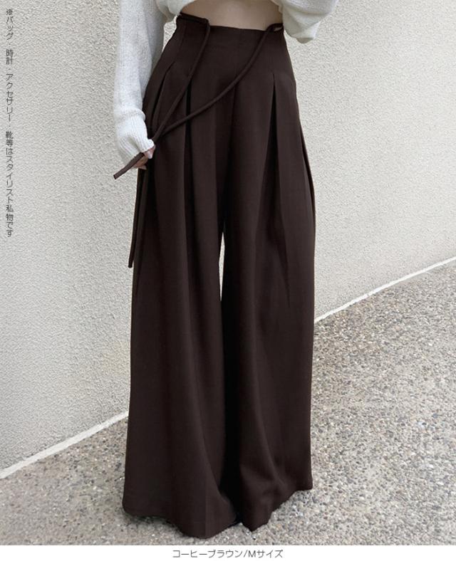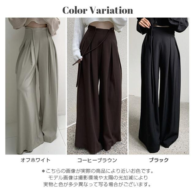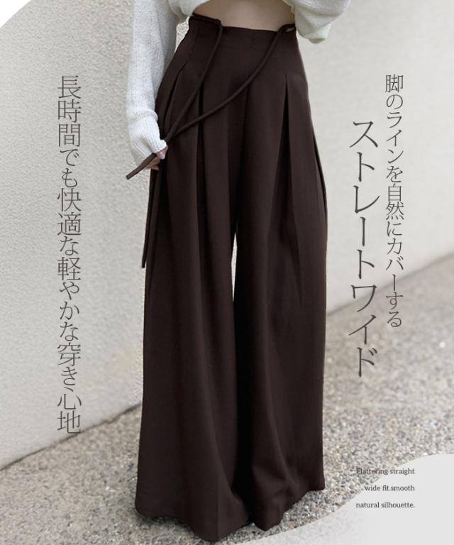 33%OFFクーポン!パンツ タックワイドパンツ レディース 春 秋 ハイウエスト ワイドパンツ ウエストリボン ロングパンツ きれいめ カジュアル ブラック ブラウン アイボリー 【ハイウエストタックワイドパンツ】 ダークエンジェル