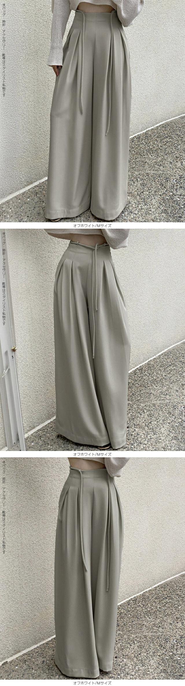 【ハイウエストタックワイドパンツ】