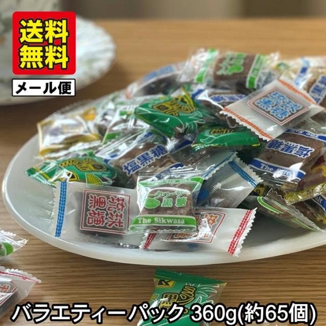 【メール便】黒糖のお菓子 黒糖バラエティーパック 個包装 360g(65〜70個入) 小分け 5種類 プレーン ミント黒糖 塩黒糖 生姜黒糖 シークワーサー黒糖