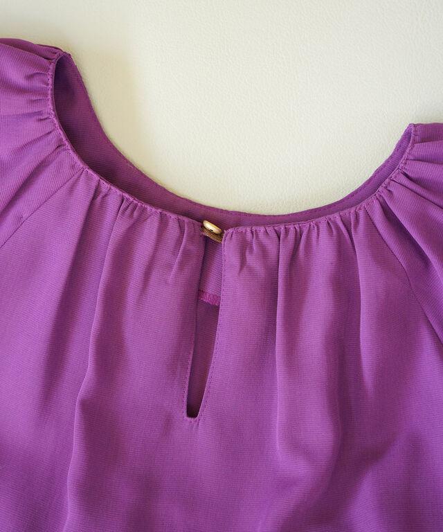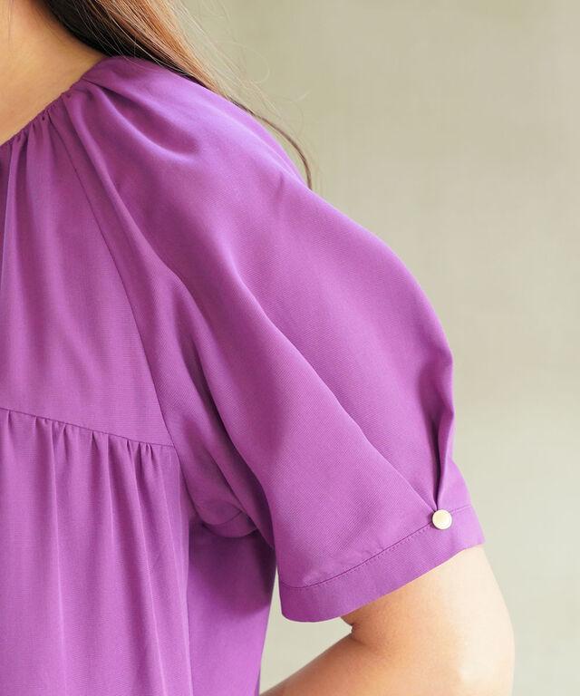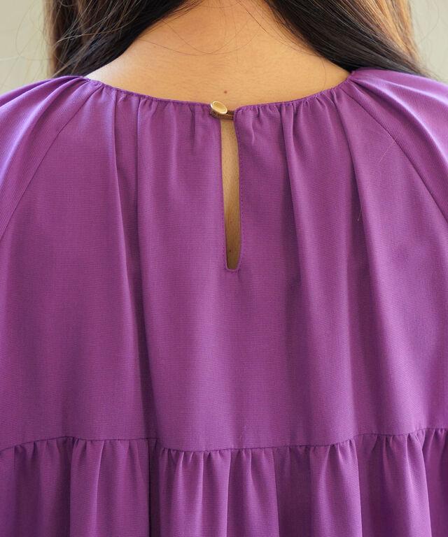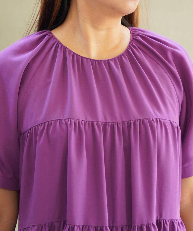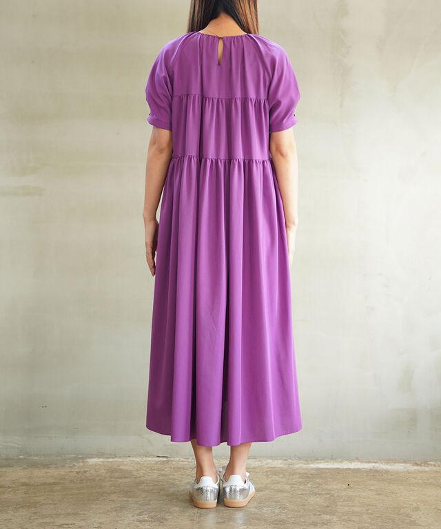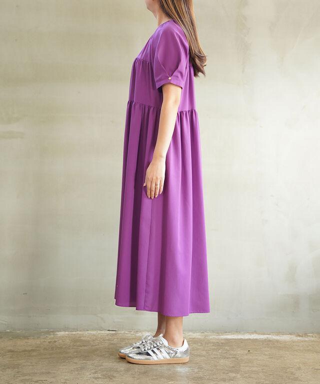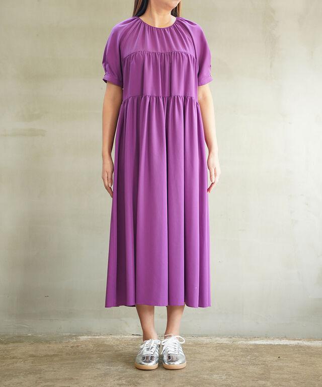 ギャザーをたっぷりと入れた華やかなワンピース。