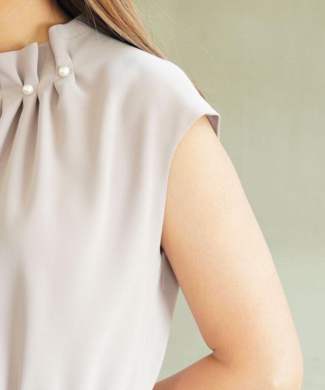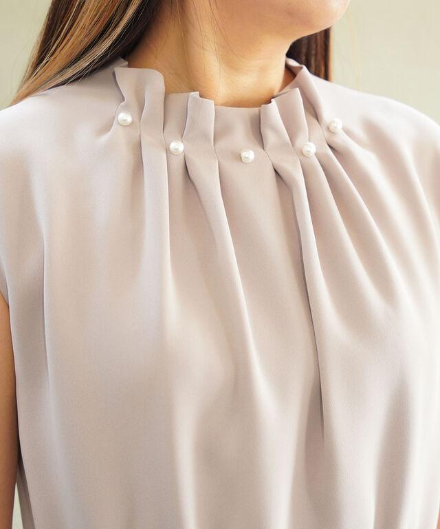首元に配したパールが、気分をグッと高めてくれるワンピース。
