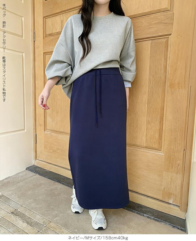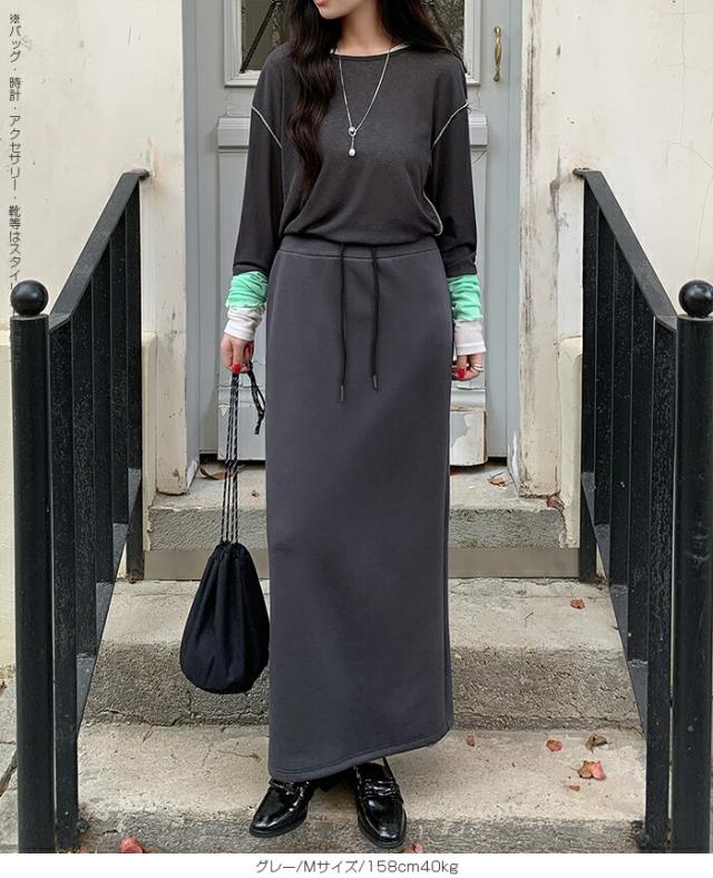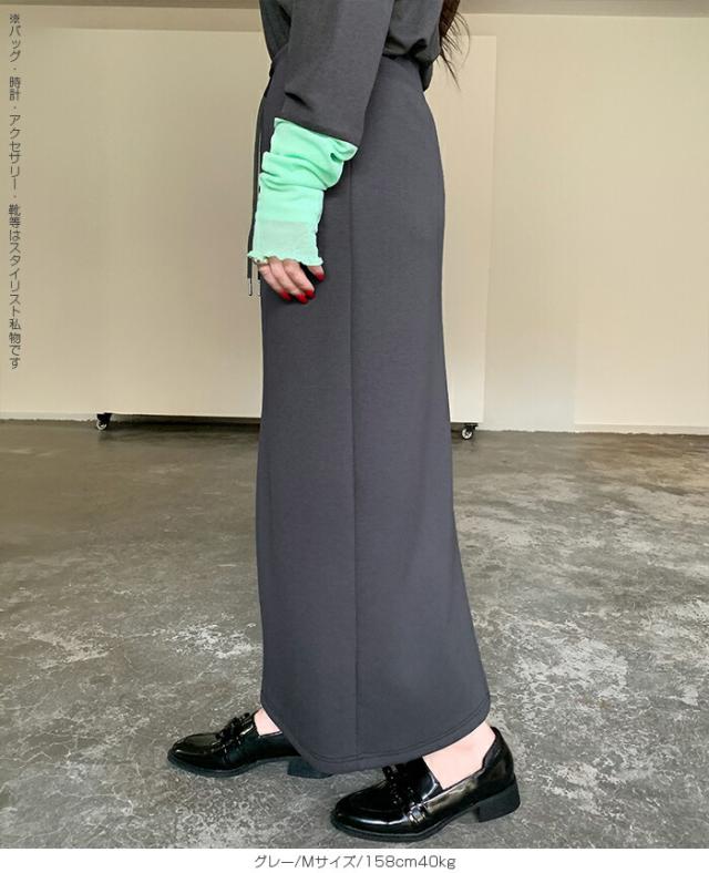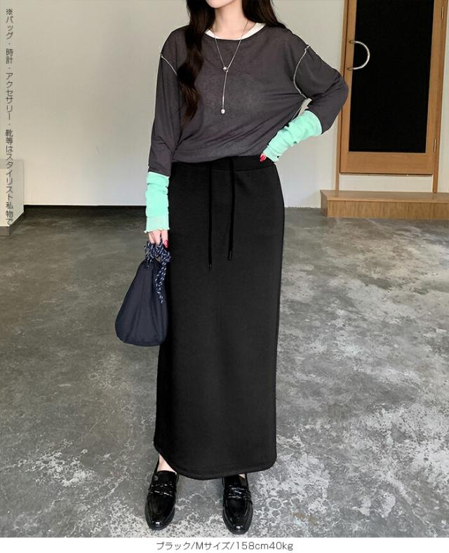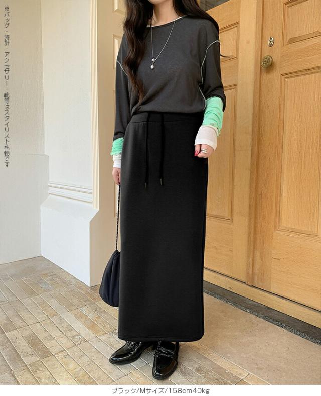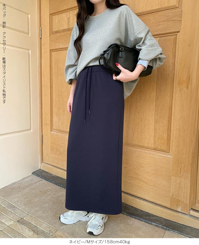 【紐づけIラインロングスカー】 すっきりとした縦長ラインでスタイルアップを叶える、 Iラインロングスカート。 腰回りをコンパクトに見せつつ、 程よいゆとりで下半身のラインを拾いすぎない絶妙な設計です。 《商品ポイント》 細見えIライン: 無駄のないストレートシルエットが、 体型をカバーしながら脚長効果を発揮。 きれい見えウエスト: 前はフラットでトップスINもサマになり、 後ろ半分ゴム+調節紐でフィット感も抜群。 《デザイン・シルエット》 脚のラインを拾いすぎない、 程よいゆとりのあるナロー(タイト)ライン。 裾に向かって真っ直ぐ落ちるストレートシルエットが、 大人っぽい抜け感を演出します。 バックセンタースリットにより、 タイトめなシルエットながら足さばきは軽やか。 《コーディネート提案》 Office: リブニットにブーツ、ロングコートを羽織って、 上品で知的な通勤スタイルに。 Casual: ボーダーニットやスウェットをゆるくインし、 スニーカーでこなれ感のある休日スタイル。 Warm up: さらに寒い日はタイツや裏起毛レギンスを仕込んでも、 表に響かずしっかり保温。 Lady like: ショート丈のカーディガンやジャケットを合わせれば、 さらにスタイルアップ効果も。 《サイズ・カラーバリエーション》 サイズ:S/M カラー:ダークグレー/ライトグレー/ネイビー/ブラック 《素材・機能性》 素材:ポリエステル78%、レーヨン16%、ポリウレタン6% |