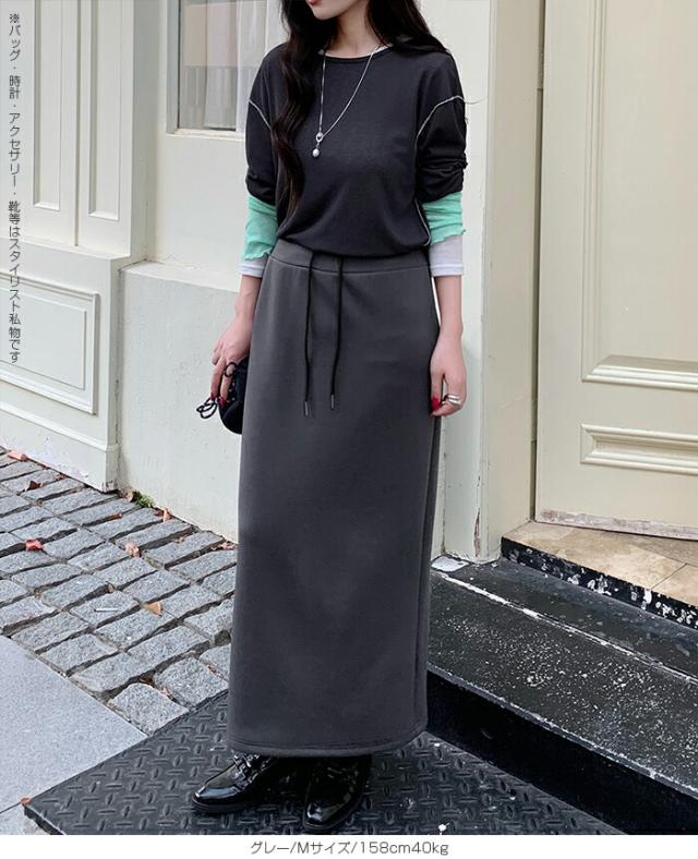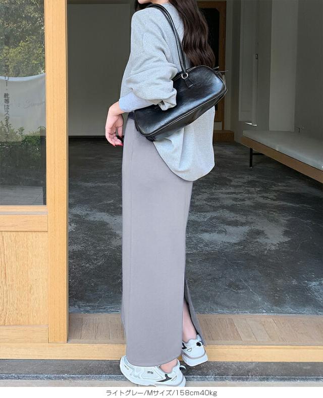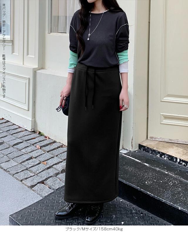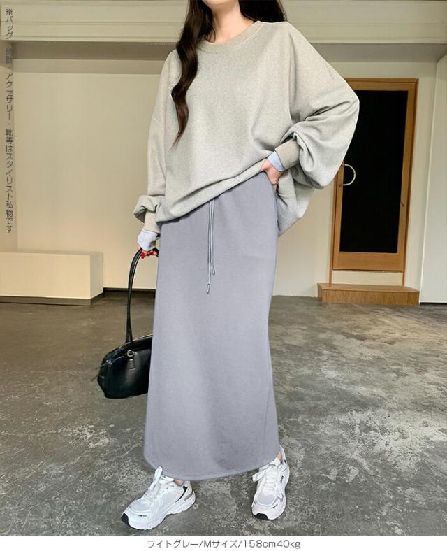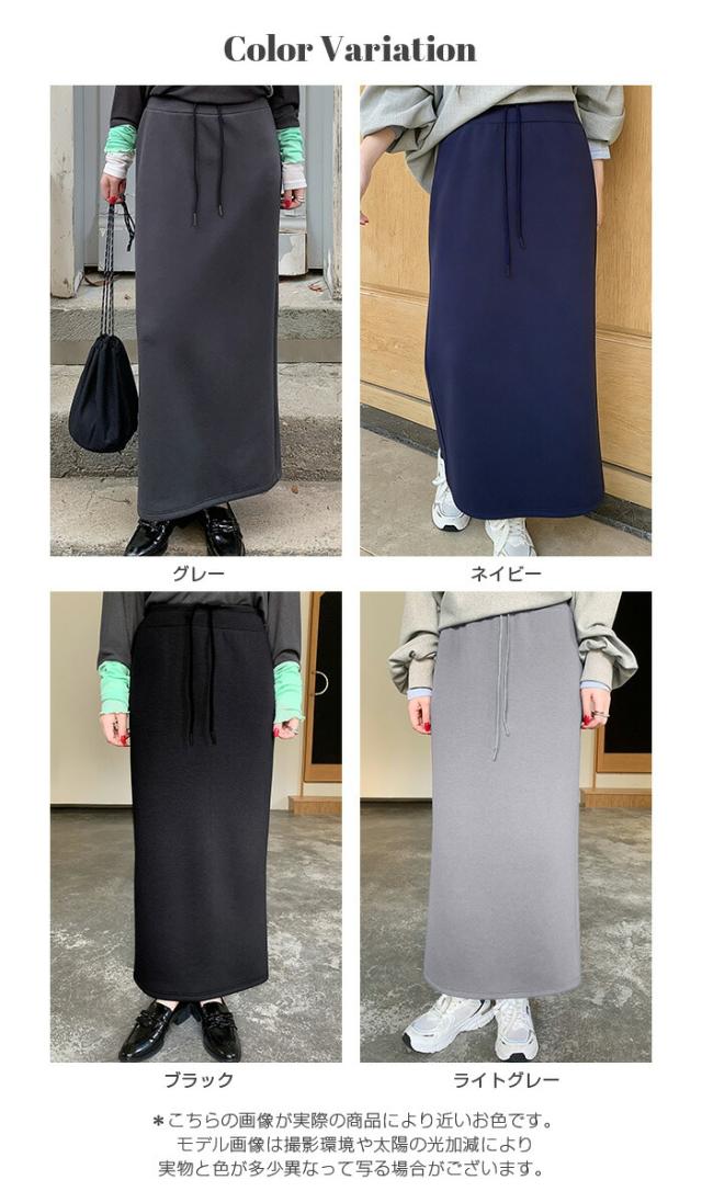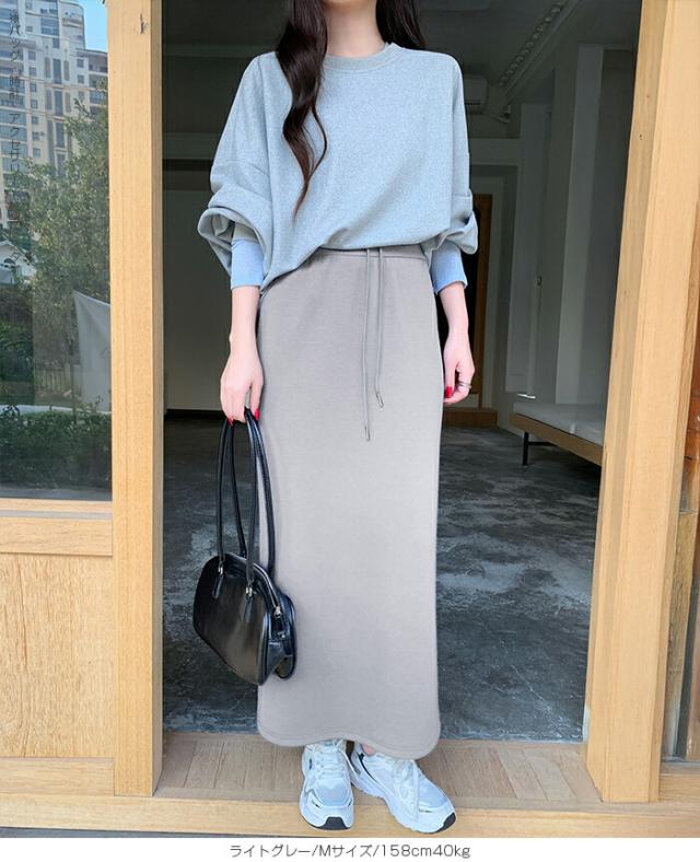 【紐づけIラインロングスカー】 すっきりとした縦長ラインでスタイルアップを叶える、 Iラインロングスカート。 腰回りをコンパクトに見せつつ、 程よいゆとりで下半身のラインを拾いすぎない絶妙な設計です。 《商品ポイント》 細見えIライン: 無駄のないストレートシルエットが、 体型をカバーしながら脚長効果を発揮。 きれい見えウエスト: 前はフラットでトップスINもサマになり、 後ろ半分ゴム+調節紐でフィット感も抜群。 《デザイン・シルエット》 脚のラインを拾いすぎない、 程よいゆとりのあるナロー(タイト)ライン。 裾に向かって真っ直ぐ落ちるストレートシルエットが、 大人っぽい抜け感を演出します。 バックセンタースリットにより、 タイトめなシルエットながら足さばきは軽やか。 《コーディネート提案》 Office: リブニットにブーツ、ロングコートを羽織って、 上品で知的な通勤スタイルに。 Casual: ボーダーニットやスウェットをゆるくインし、 スニーカーでこなれ感のある休日スタイル。 Warm up: さらに寒い日はタイツや裏起毛レギンスを仕込んでも、 表に響かずしっかり保温。 Lady like: ショート丈のカーディガンやジャケットを合わせれば、 さらにスタイルアップ効果も。 《サイズ・カラーバリエーション》 サイズ:S/M カラー:ダークグレー/ライトグレー/ネイビー/ブラック 《素材・機能性》 素材:ポリエステル78%、レーヨン16%、ポリウレタン6% |