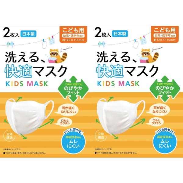 4枚 子供用マスク2枚入り×2セット 洗える日本製マスク個包装 送料無料 小さめサイズの国産マスク子ども用