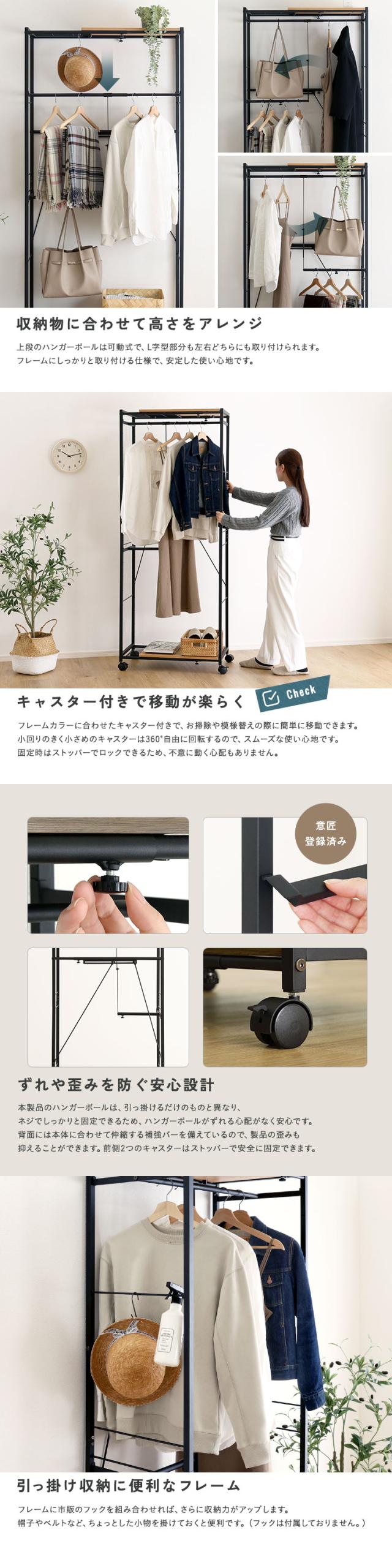 【キーワード】 伸縮ハンガーラック おしゃれ おすすめ アイアン スチール製 頑丈 2段 天板付き キャスター付き ブラック 黒 ヴィンテージ 木目 棚付き ロングコート