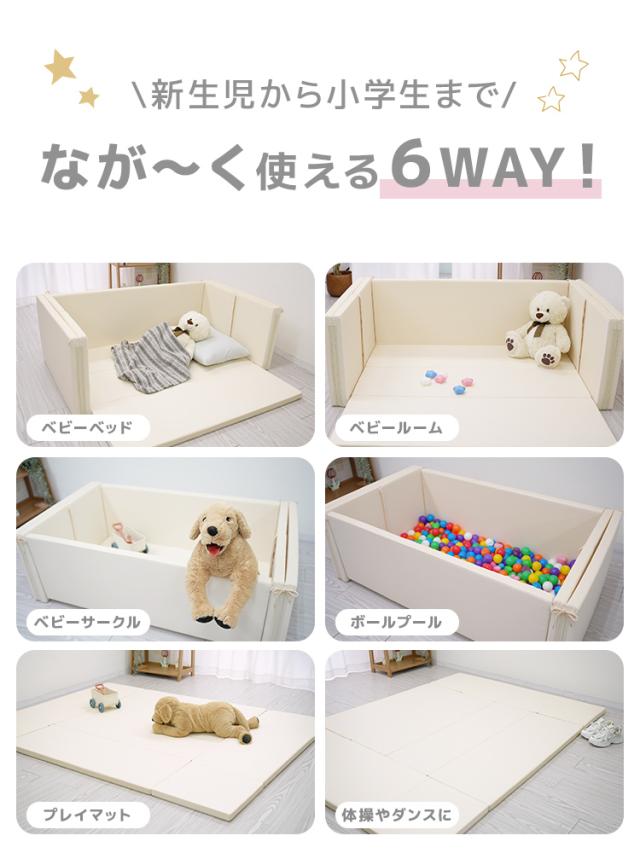 ベビーサークル 6WAY ベビーマット 99.9% 抗菌 マット プレイマット 128×78 展開時 214×156 4cm厚 おしゃれ 防水 折りたたみ 安全 衝撃吸収 防音 騒音対策 ボールプール 体操マット オールシーズン 断熱 安心 サークル お祝い キッズ 子供 赤ちゃん 送料無料 WEIMALL
